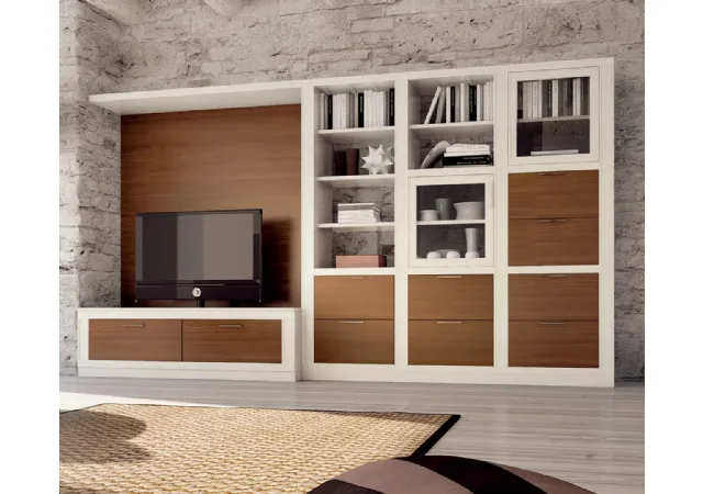 Vuoi arredare un soggiorno dinamico e operativo? Ti presentiamo la parete attrezzata Melograno composizione 9 Le Fablier dalle linee decise moderne.