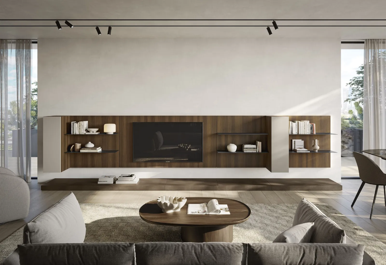 Le Pareti Attrezzate moderne permettono di creare differenti ambientazioni nel living, liberando spazio e ottimizzando ogni angolo. Siamo rivenditori di Arredamento Casa in melaminico dei migliori brand: contattaci e ottieni informazioni! Studiando le più attuali e personali esigenze abitative, selezioniamo solo le più originali e interessanti soluzioni d’arredo sul mercato, realizzabili su misura in base alle più personali richieste. La Parete Attrezzata Night & Day L02NS di Colombini Casa diventa protagonista in stanze di ogni tipo grazie ai suoi accessori modulari e alla possibilità di scegliere texture, materiali, cromie, conformazioni e molto altro.