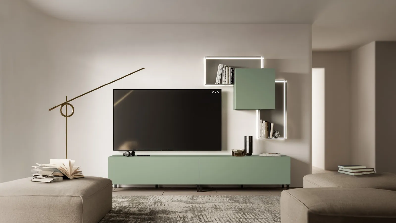 Pareti attrezzate e mobili giorno SantaLucia: clicca e scopri il modello Pratico PTG434 e potrai completare stanze moderne di ogni genere.