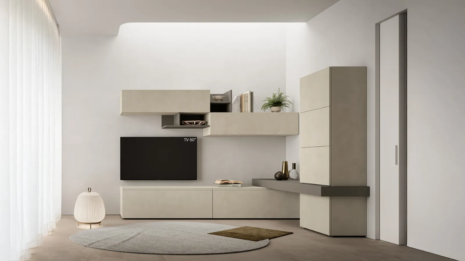 Vuoi allestire un living dinamico e operativo? Ecco a te la parete attrezzata Pratico PTG437 SantaLucia dalle forme decise moderne.