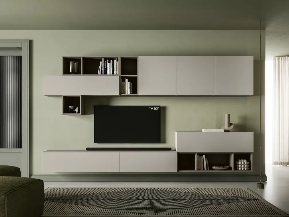 La Parete Attrezzata Pratico PTG438 di SantaLucia nell'immagine è una delle più originali soluzioni d’arredo in commercio: componibilità su misura e le varie opportunità di progettazione la rendono pratica e sofisticata. SantaLucia offre a catalogo innovativi modelli di mobili soggiorno, diversi per stile e forme, finiture e elementi: scopri nel nostro punto vendita l'Arredamento Casa dei migliori produttori. Visto che il living deve essere uno spazio pratico e bello a vedersi, sono indispensabili alcuni arredi belli e pratici come le Pareti Attrezzate. I mobili soggiorno in melaminico dalle linee moderne come il modello nell'immagine sono veramente eclettici e capaci di progettare la zona giorno sfruttando bene ogni angolo.