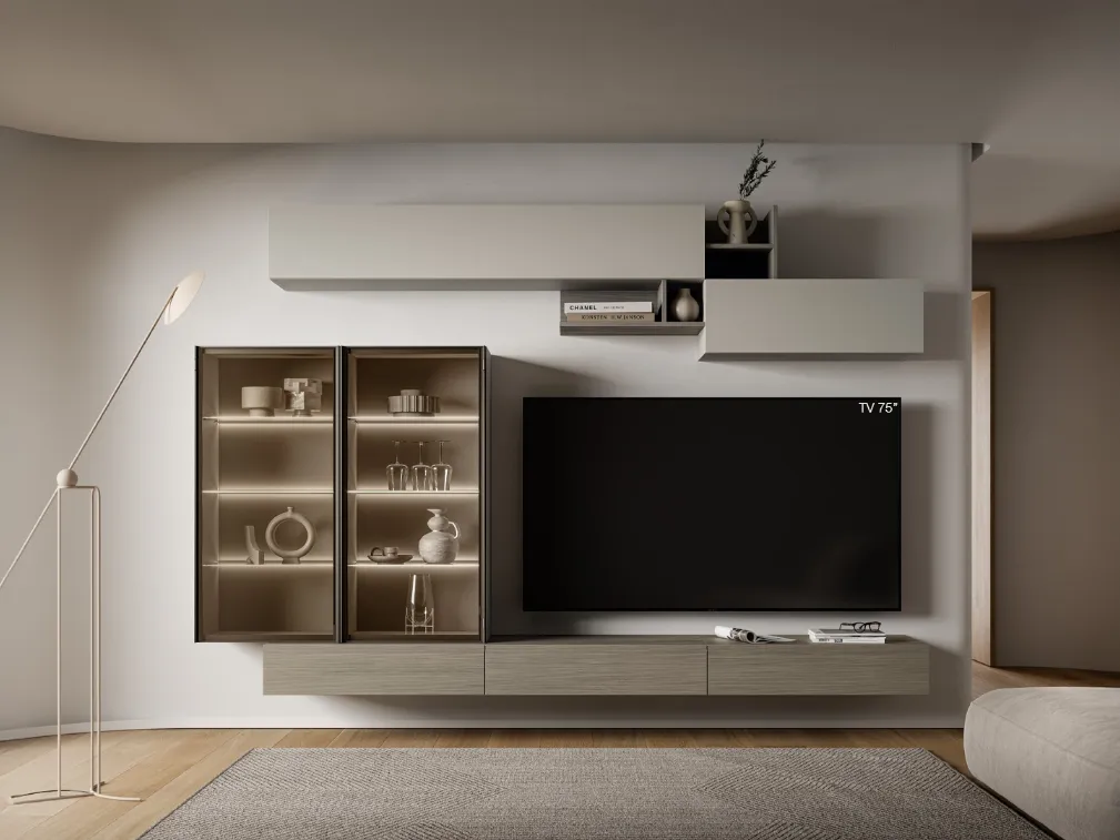 SantaLucia produce inediti modelli di mobili soggiorno, diversi per stile e conformazioni, finiture e elementi: scopri in negozio l'Arredamento Casa delle migliori marche. Dato che il living deve essere uno spazio funzionale e bello da vedere, sono molto utili alcuni arredi belli e funzionali come le Pareti Attrezzate. Lasciati ispirare da un ricco catalogo di arredi per la zona giorno e potrai trovare la parete attrezzata che fa per te. La Parete Attrezzata Pratico PTG441 di SantaLucia in foto è una delle più originali soluzioni d’arredo sul mercato: componibilità personalizzabile e le diverse opportunità di progettazione la rendono pratica e sofisticata.