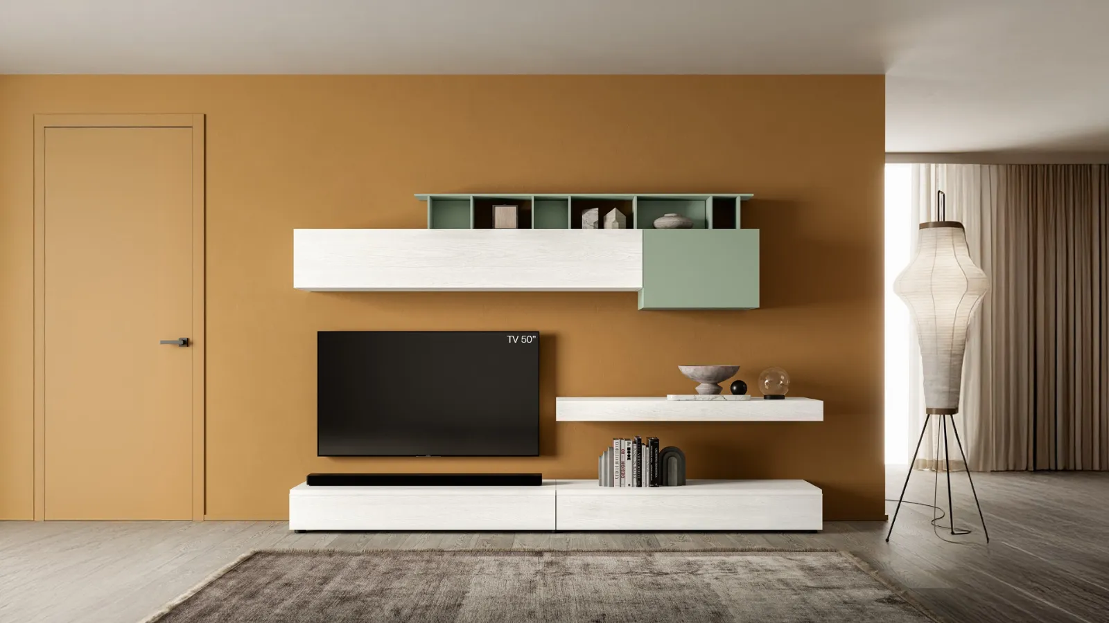 Se vuoi ultimare un living dinamico e operativo dalle linee moderne, ti presentiamo la parete attrezzata Pratico PTG444 SantaLucia.