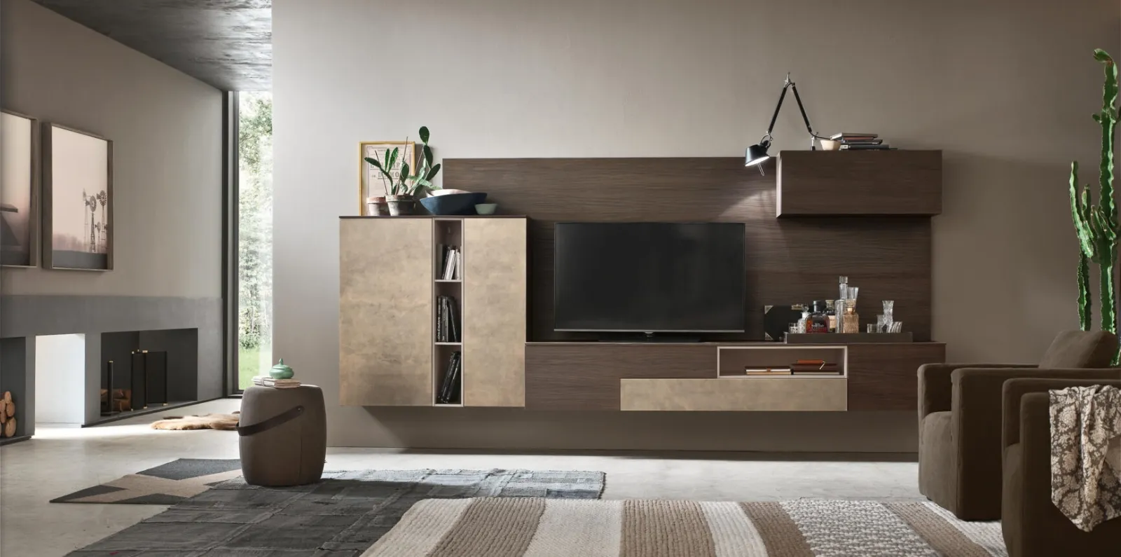 Le Pareti Attrezzate moderne offrono l'opportunità di creare differenti ambientazioni nel living, liberando spazio e valorizzando ogni angolo.