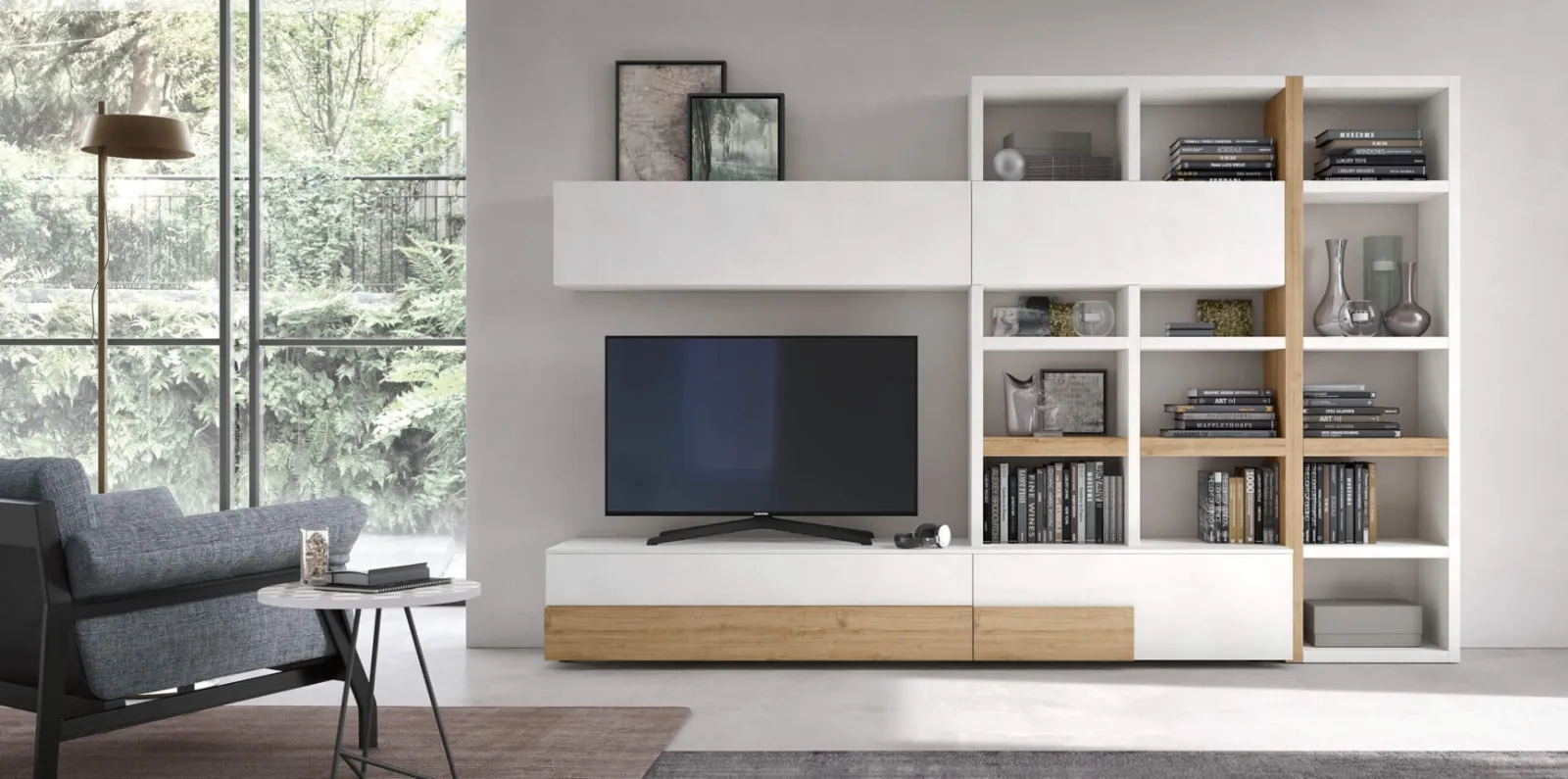 Questa soluzione rappresenta tutta l'eccellenza che il marchio garantisce grazie a pluriennale esperienza e grande dedizione nel campo dell'arredo e del design. La Parete Attrezzata Seta Sistema Spalla Comp SA2215 di Maronese nella fotografia, realizzata in melaminico, risolve le più personali esigenze abitative di spazio e stile senza rinunciare alla ricerca estetica. Se cerchi arredi salvaspazio e realizzabili su misura, contattaci e ottieni informazioni sull'Arredamento Casa dei migliori produttori. Un po’ librerie, un po’ mobili contenitori ed espositori: le Pareti Attrezzate sono ideali per arredare un luogo pratico e operativo.