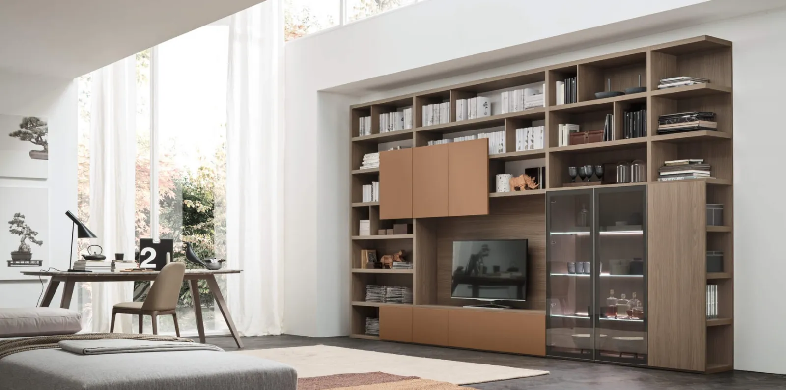 Le Pareti Attrezzate moderne danno la possibilità di creare diverse atmosfere nel living, liberando spazio e ottimizzando ogni angolo.