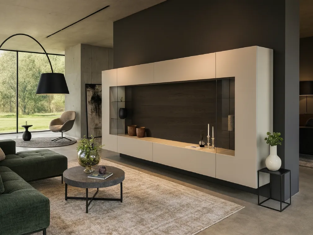 La Parete Attrezzata Soggiorno con schienale Carbone di Voltan in foto, con finitura in laccato opaco, risolve le più particolari problematiche abitative di spazio e stile senza rinunciare alla ricerca stilistica. Se cerchi arredi salvaspazio e realizzabili su misura, contattaci e scopri di più sull'Arredamento Casa delle migliori marche. Un po’ librerie, un po’ contenitori ed espositori: le Pareti Attrezzate sono ideali per organizzare un luogo pratico e operativo. Questo modello rappresenta tutta l'eccellenza che il brand assicura grazie a pluriennale esperienza e grande passione nel settore dell'arredo e del design.