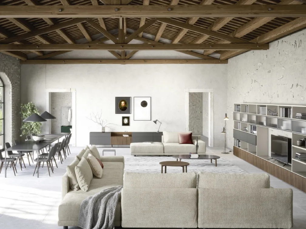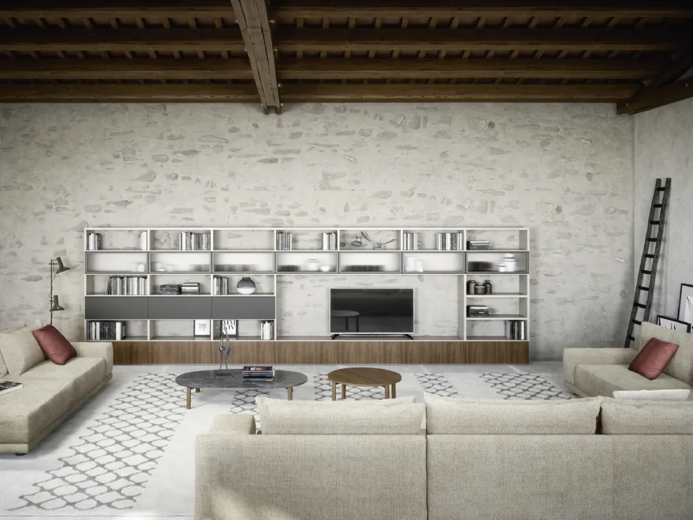 Se vuoi completare un soggiorno dinamico e operativo dalle linee moderne, ecco a te la parete attrezzata Wall 30 05 Novamobili.