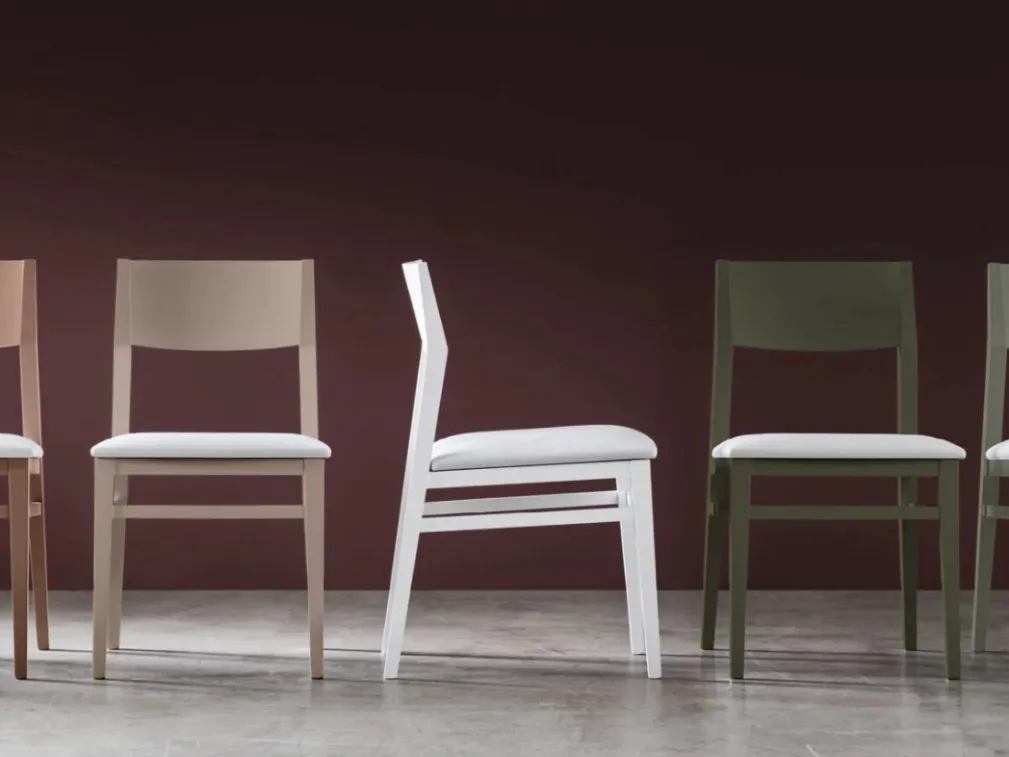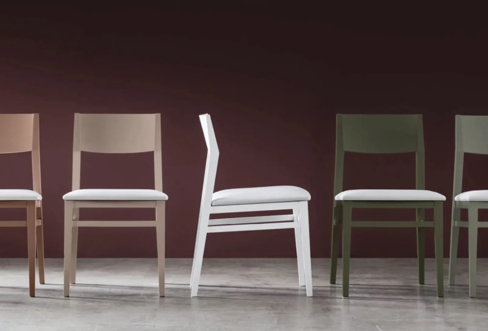 Con questa sedia Ester Maronese in legno, una delle nostre sedute fisse moderne, potrai completare i tuoi locali.