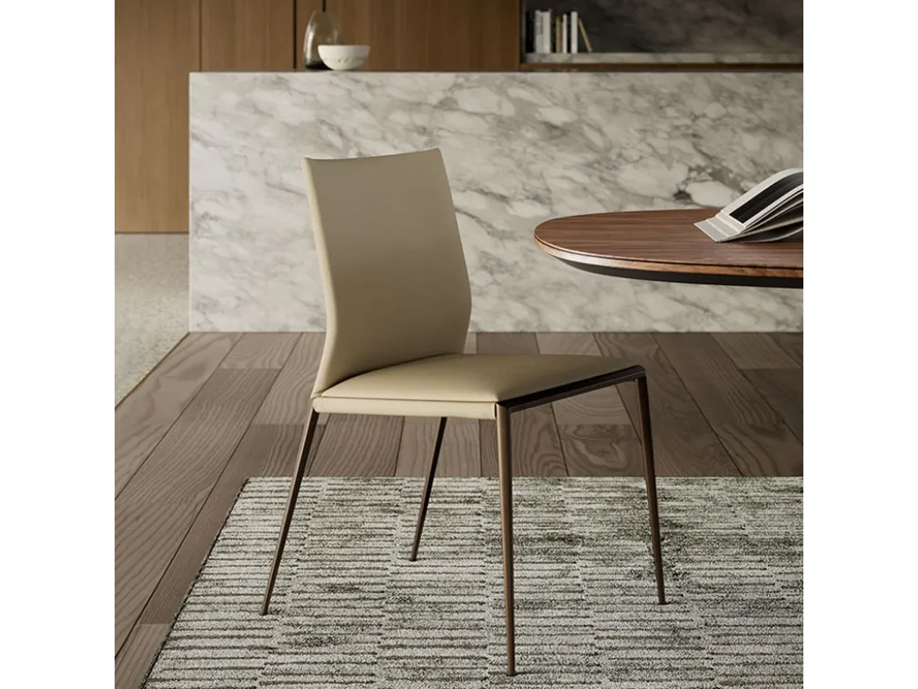 Le sedie risultano essere tra i mobili ed elementi accessori imprescindibili in ogni casa, perciò disponiamo nel nostro showroom di una vasta collezione di soluzioni da scegliere basandoti sulle tue preferenze. Ogni soluzione Cattelan Italia assicura un elevato contenuto estetico indipendentemente dal locale cui è destinato, poiché organizza gli spazi impreziosendoli. Nel nostro showroom potrai visionare in prima persona le più belle proposte in commercio, tra cui anche quelle da pranzo design firmate dal noto e rinomato marchio Cattelan Italia. Sedia di design Eva di Cattelan Italia in pelle: saprà organizzare perfettamente la zona pranzo o il living della tua casa, mixando doti di funzionalità e stile.