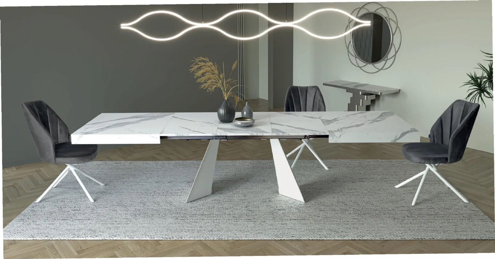 Scegli i mobili e complementi in laminato dei migliori brand per ultimare con funzionalità i tuoi spazi senza mai trascurare il valore estetico. Nel nostro sito dedicato all'Arredamento Casa troverai tutto ciò di cui hai necessità per il soggiorno o la cucina. In showroom ti aspetta una ricca gamma di Tavoli allungabili dei migliori brand, tra cui anche il modello da pranzo presente in foto. Durante l'acquisto del tavolo perfetto per te è necessario valutare dimensioni, linee, materiali e stile, per ottimizzare lo spazio con un ottimo effetto estetico.
