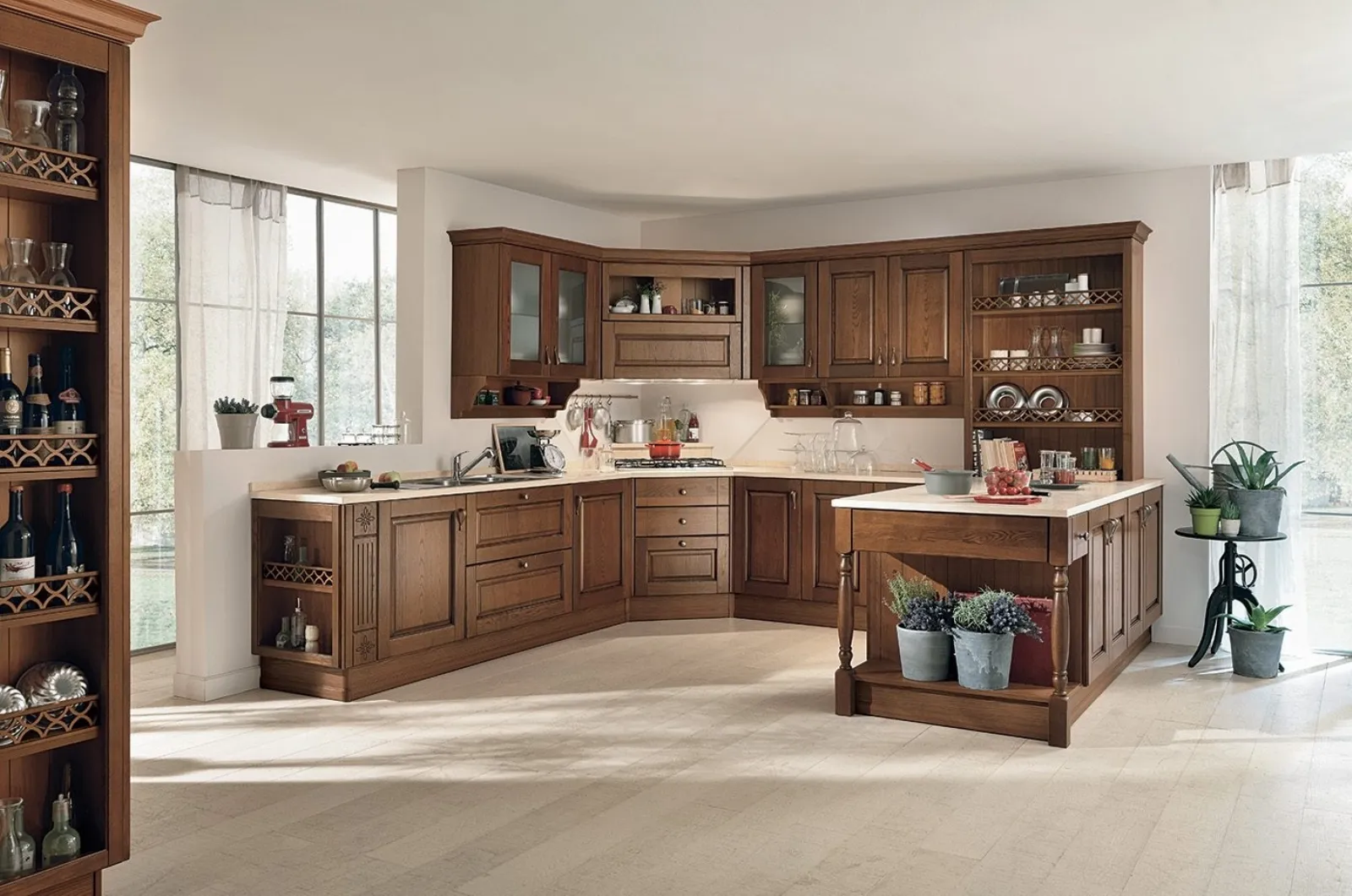 Scopri in negozio un ricco catalogo di soluzioni del marchio: la linea completa Colombini Kitchen ti aspetta! Solo con le più belle soluzioni ad angolo potrai arredare l'ambiente secondo le tue personali esigenze abitative ma in perfetto stile tradizionale. La Cucina Classica angolare con penisola Armonia 04 di Colombini Kitchen in foto presenta uno stile accogliente, ricercato ed elegante, portavoce del tipico gusto romantico delle Cucine Classiche.