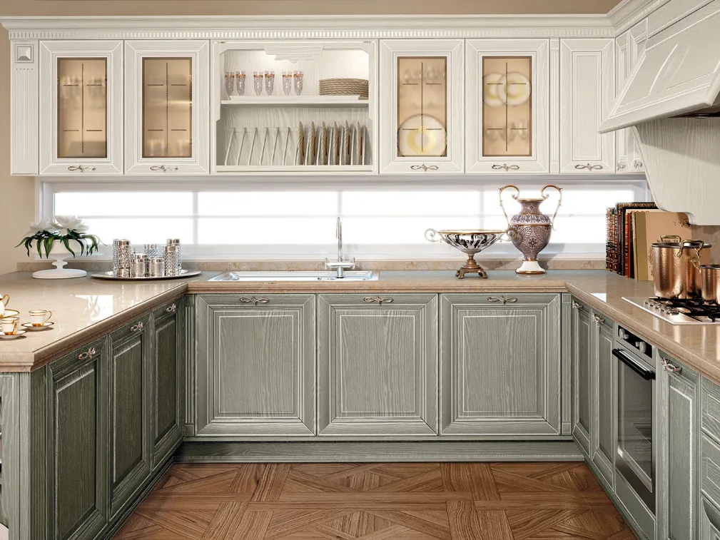 Scegli la cucina Pantheon 12: le soluzioni classiche Lube in legno sono sinonimo di qualità, design e contenuto estetico.