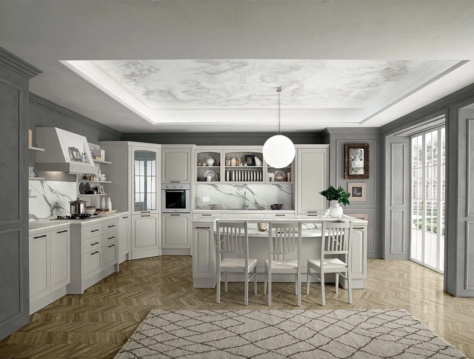 Vuoi ristrutturare la vecchia cucina? Clicca e scopri una ricca gamma di soluzioni classiche con isola: Mida 01 ti sta aspettando!