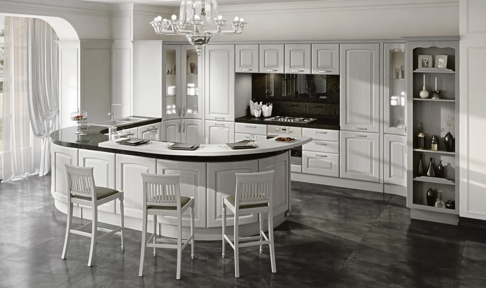 Vuoi ristrutturare la vecchia cucina? Clicca e scopri una ricca gamma di soluzioni classiche con penisola: Veronica 02 ti attende!