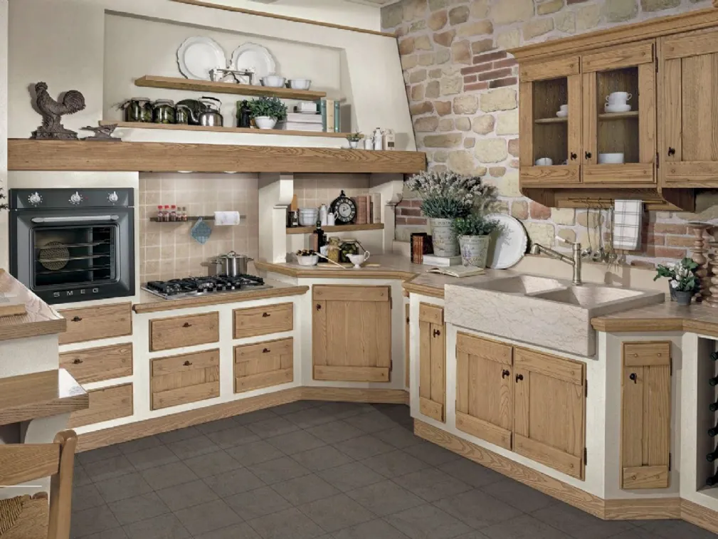 Clicca e scopri un mondo di di Cucine in Muratura ad angolo: la cucina Anita Castagno Mielato Lube in legno ti sta aspettando!