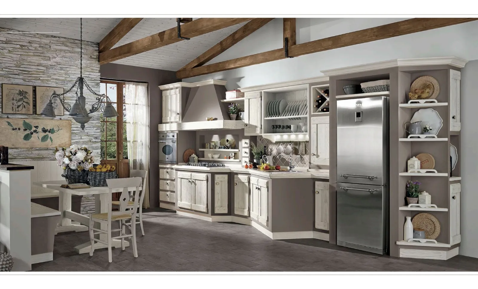 Scegli la cucina in muratura Anita Bianco Anticato: le cucine Lube in linea sono garanzia di qualità, design e contenuto estetico.