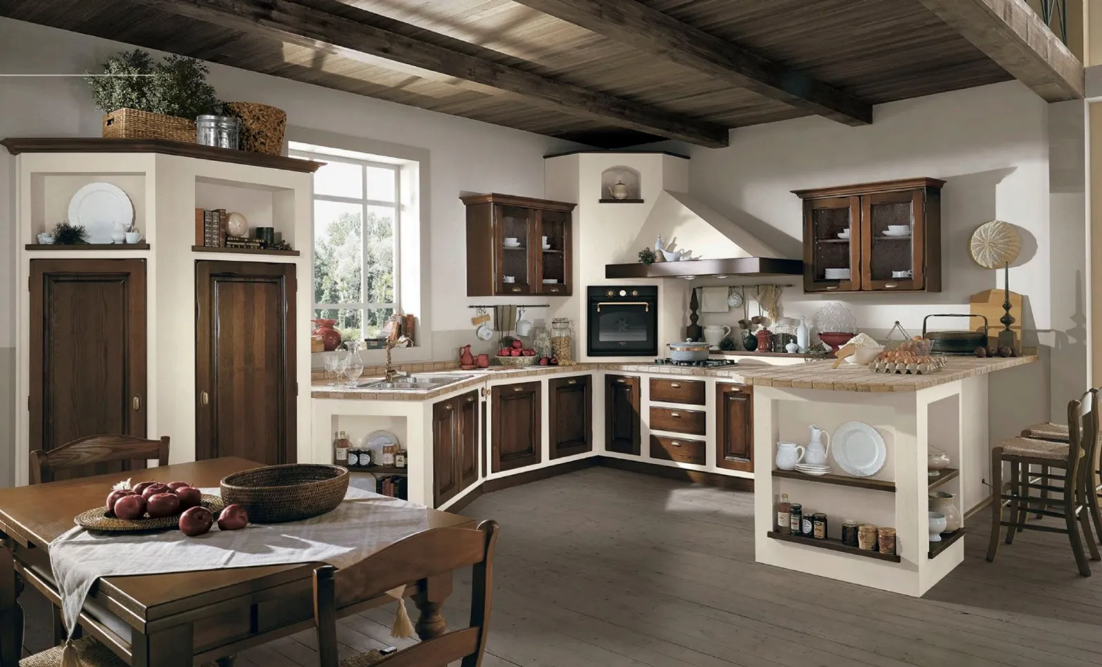 Scopri una ricca gamma di Cucine in Muratura con penisola, come il modello Onelia Frassino tinto Noce di Lube: sono soluzioni super funzionali.