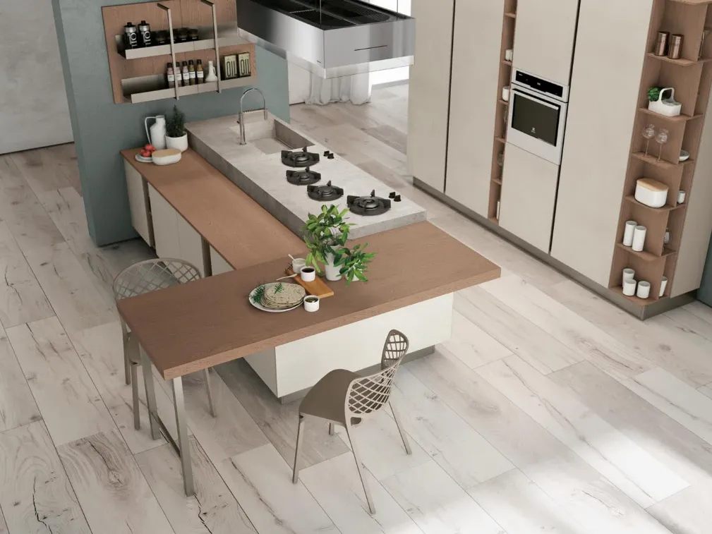 Se vuoi una cucina moderna Lube, Clover 03 in laccato opaco ti sta aspettando nel nostro negozio di Cucine Moderne con penisola.