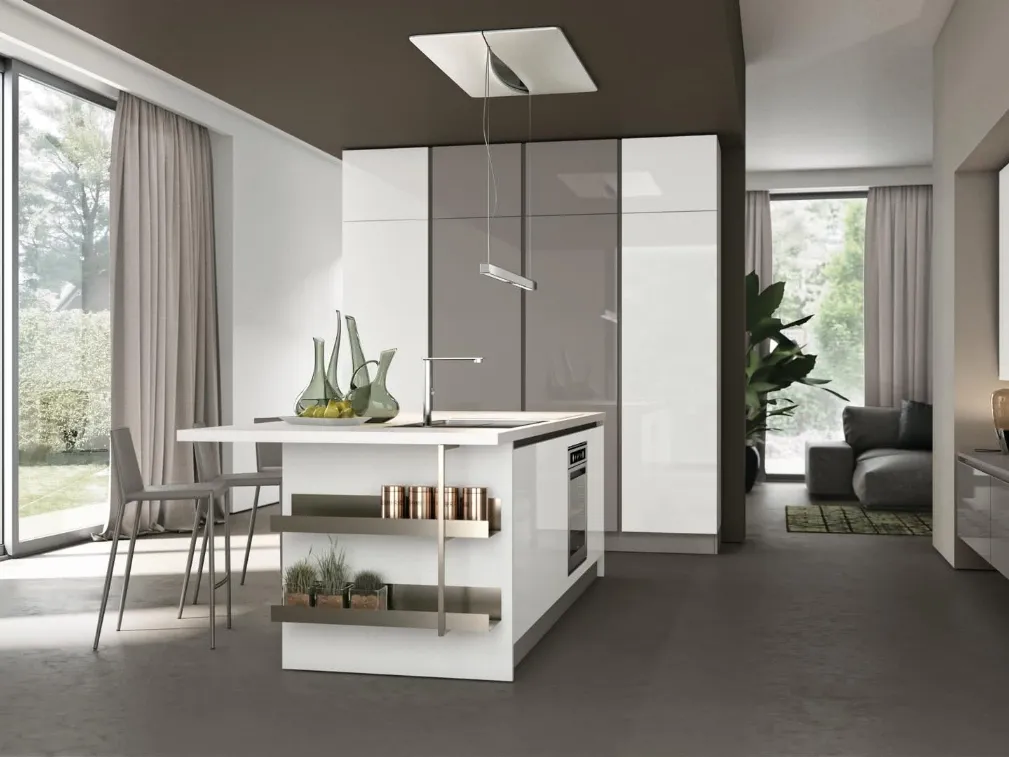 Se vuoi una cucina moderna Lube, Clover 06 in vetro ti sta aspettando nel nostro negozio di Cucine Moderne con isola.