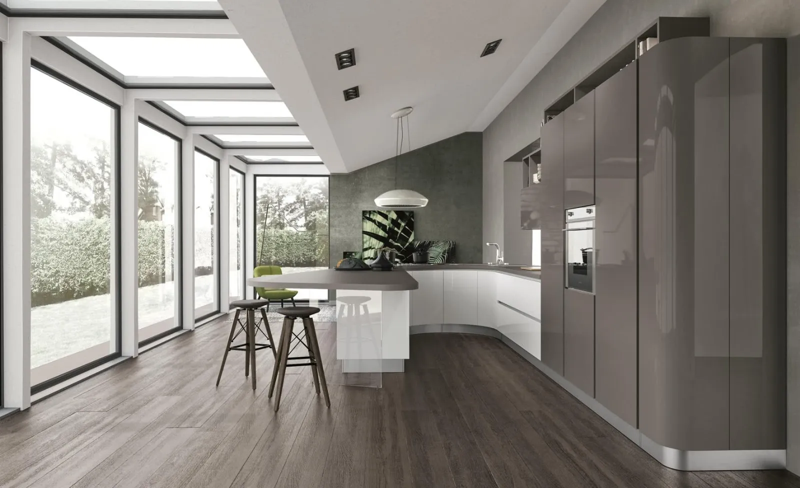 Clicca e scopri un mondo di Cucine Moderne con penisola: la cucina Clover 09 Lube in laccato lucido ti sta aspettando!