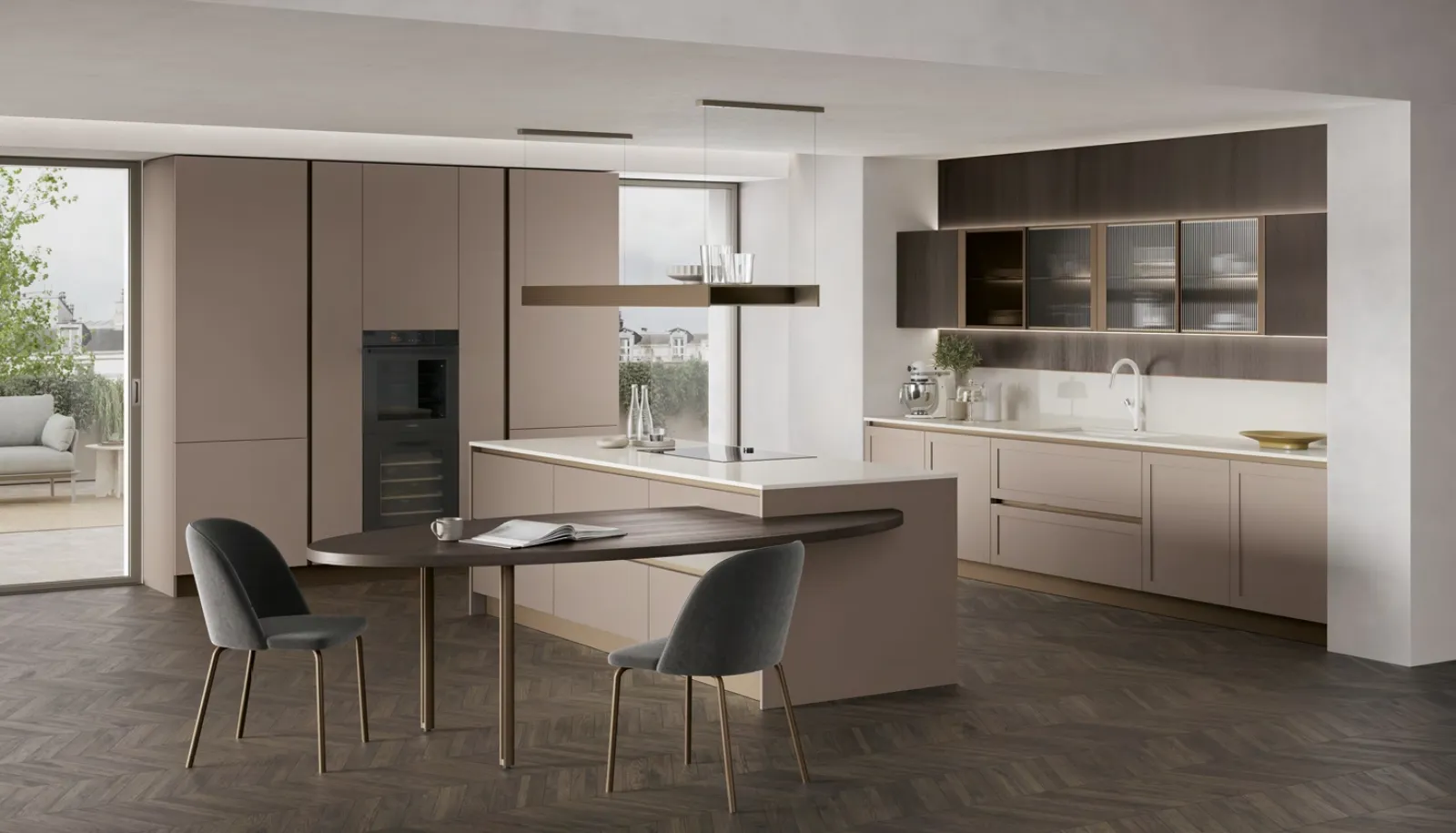 Clicca e scopri un universo di Cucine Moderne con isola: la cucina Infinity Modern 02 Stosa in Pet ti sta aspettando!