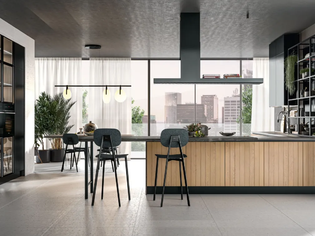 Se vuoi una cucina moderna Lube, Clover Design 06 in legno ti attende nel nostro negozio di Cucine Moderne con penisola.