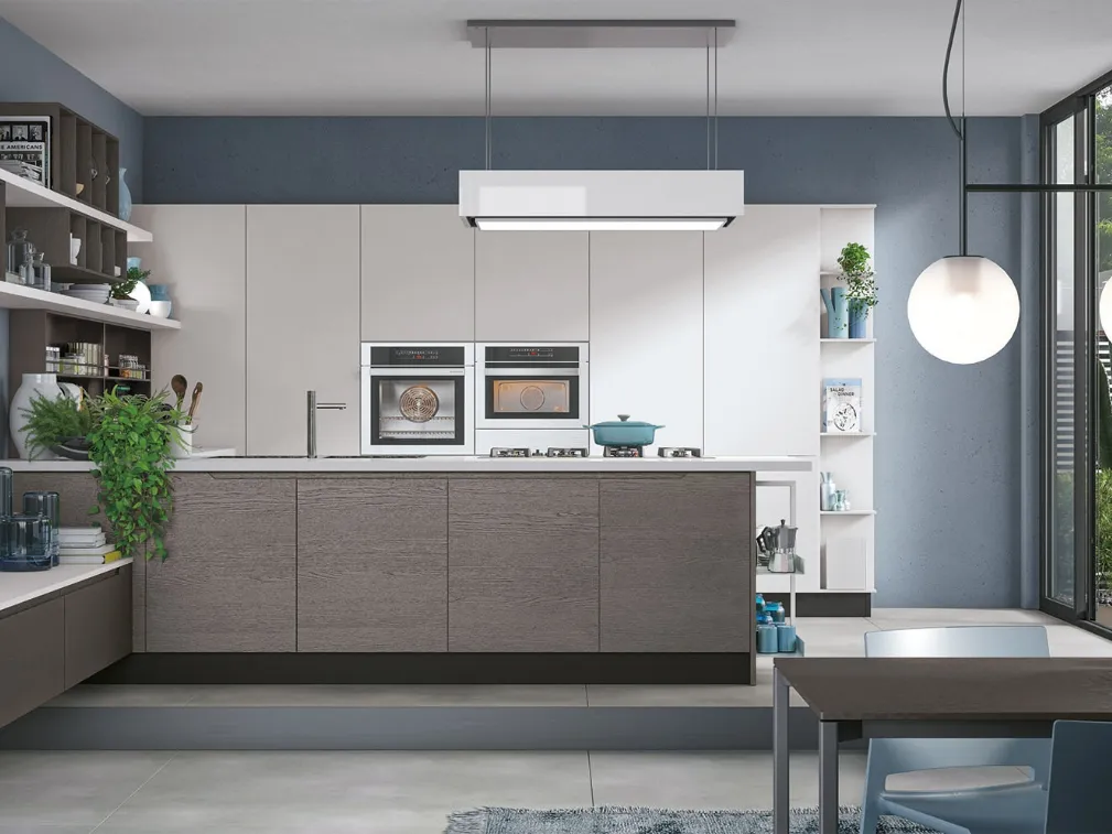 Clicca e scopri un mondo di Cucine Moderne con penisola: la cucina Luna 05 Lube in legno ti aspetta!