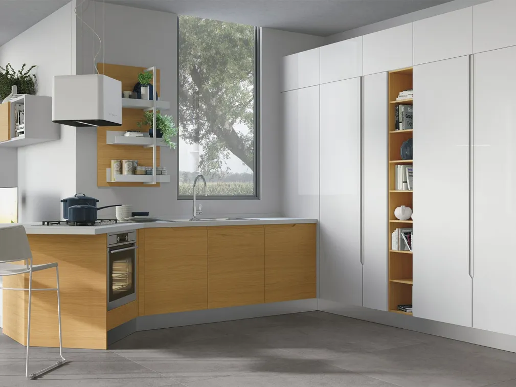 Se vuoi una cucina moderna Lube, Luna 08 in legno ti aspetta nel nostro negozio di Cucine Moderne con penisola.