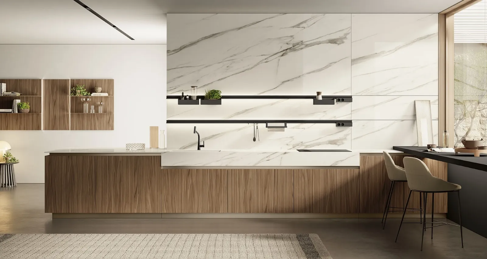 Cucine Moderne con penisola: clicca e scopri un ricco catalogo di soluzioni del brand Colombini Kitchen, tra cui il modello Lungomare Plus Cannettato 03.