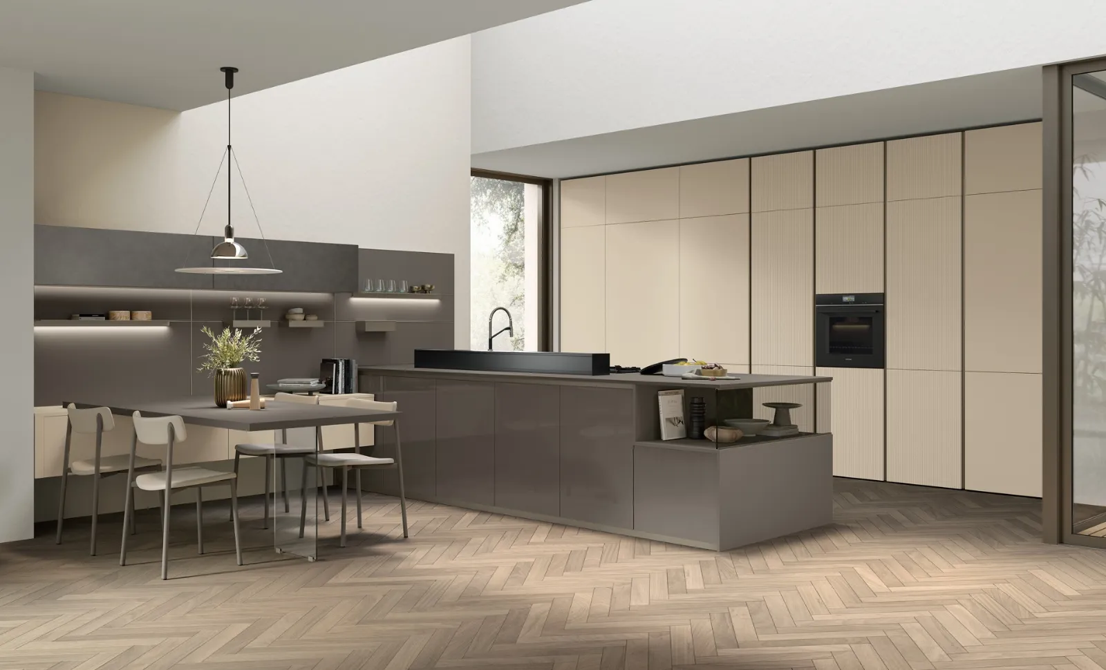 Clicca e scopri un universo di Cucine Moderne con penisola: la cucina Shade Lab 09 Lube in laccato opaco ti attende!