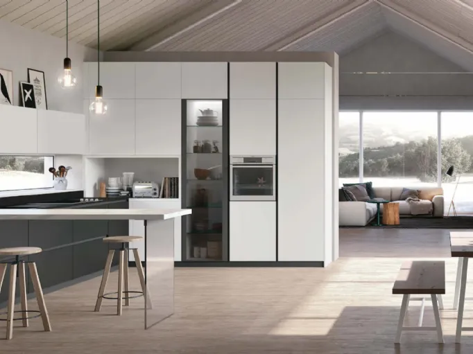 Clicca e scopri un universo di Cucine Moderne con penisola: la cucina Palio 03 Stosa in laccato opaco ti sta aspettando!