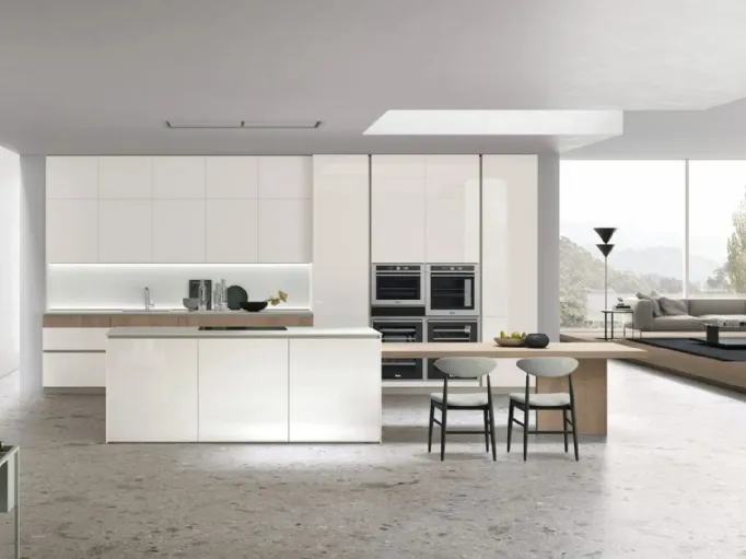 Clicca e scopri un mondo di Cucine Moderne con isola: la cucina Aliant 07 Stosa in vetro ti sta aspettando!