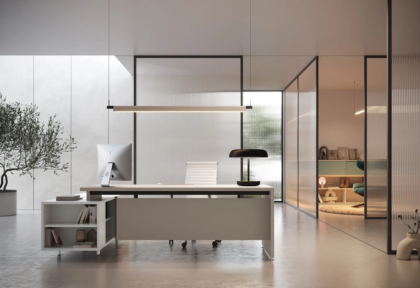 Se vuoi completare gli spazi di lavoro, eccoti il modello Go Easy Melaminico di Colombini Office tra diverse proposte di scrivanie direzionali.