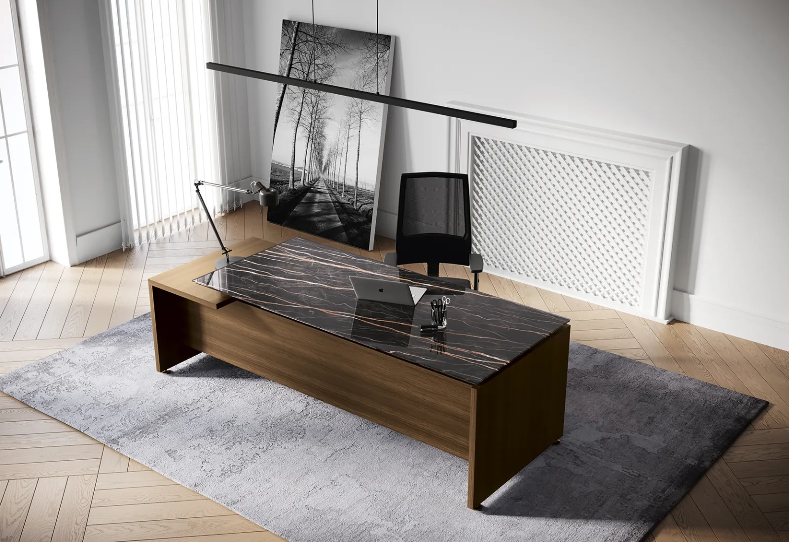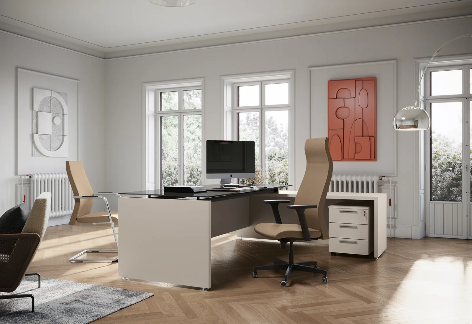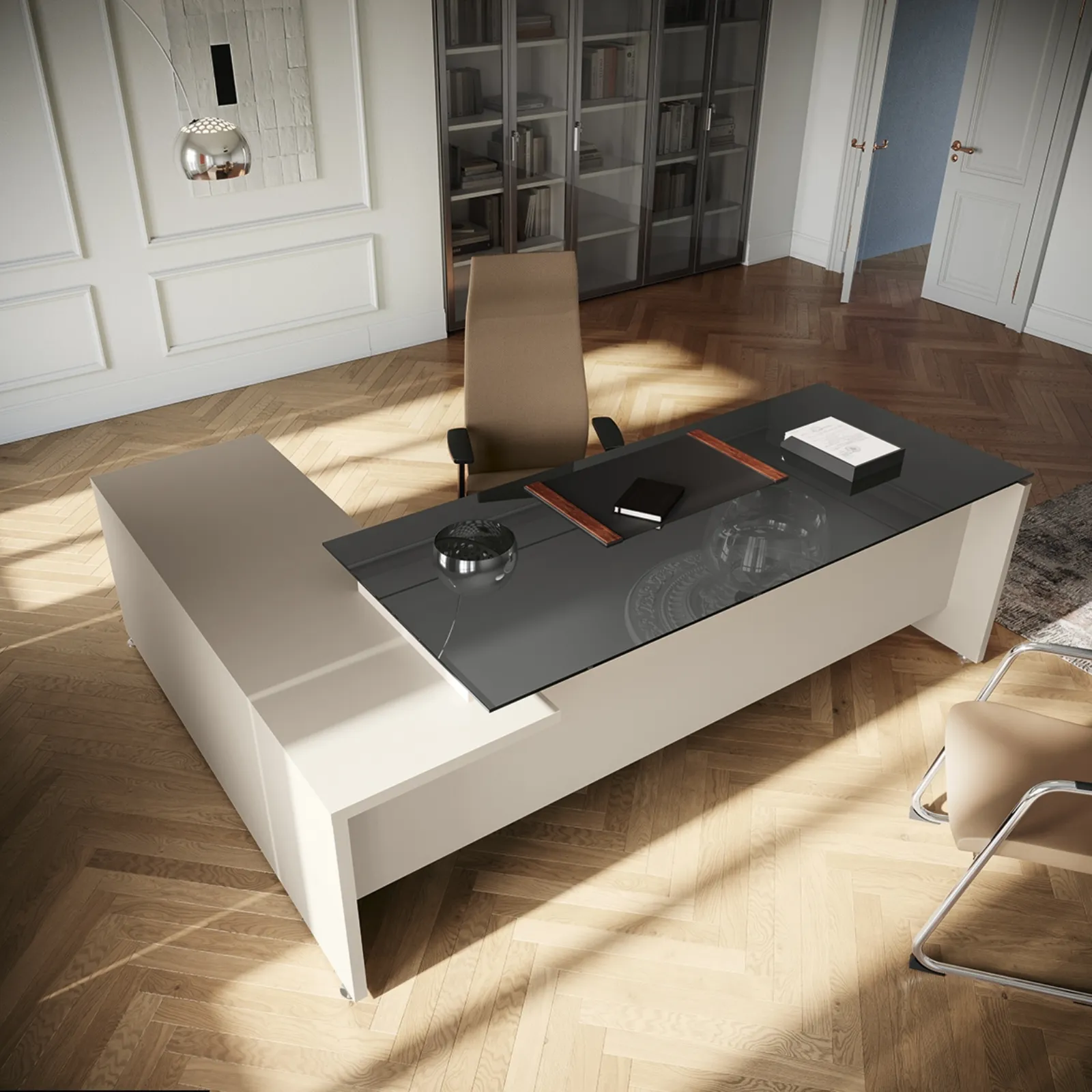 Se vuoi completare il tuo ufficio, eccoti il modello Go Easy Vetro di Colombini Office tra differenti soluzioni di scrivanie direzionali.