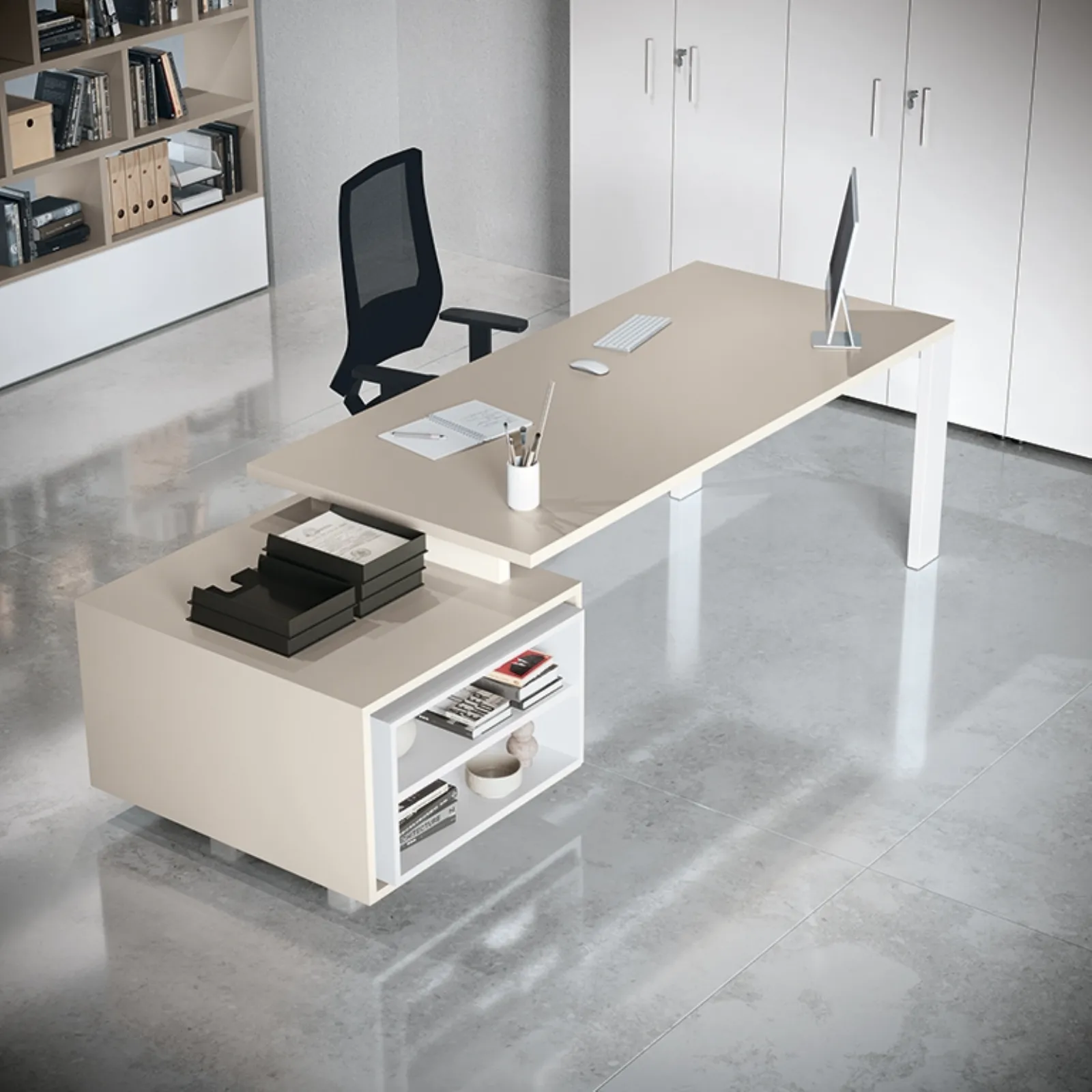 Scrivania Direzionale Go Steel Melaminico di Colombini Office: è uno tra i migliori esempi di mobili per gliambienti lavorativi funzionali e belli da vedere del noto marchio. Arredare con attenzione il tuo ufficio è di primaria importanza per garantire il comfort per chi lavora e l’accoglienza per i clienti: il nostro showroom ti aspetta. Per il tuo Arredo Ufficio hanno un ruolo di estrema rilevanza le composizioni con scrivanie direzionali in melaminico, studiate per attrezzare lo spazio. In negozio puoi toccare con mano le più esclusive composizioni di Arredo Ufficio in melaminico, sempre di ottima qualità e ideali per locali di ogni genere.