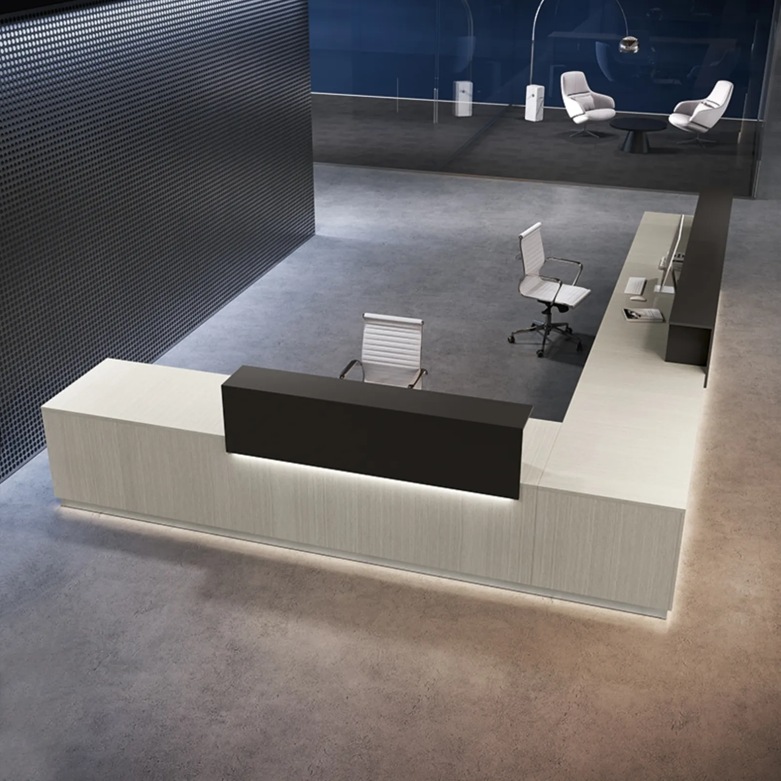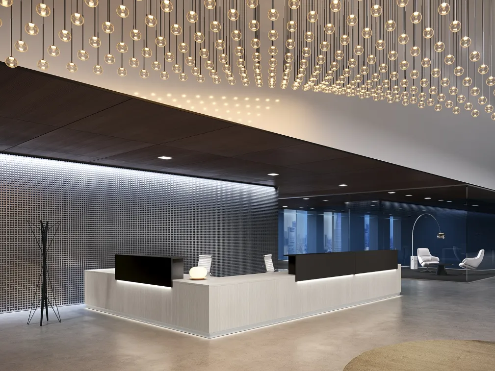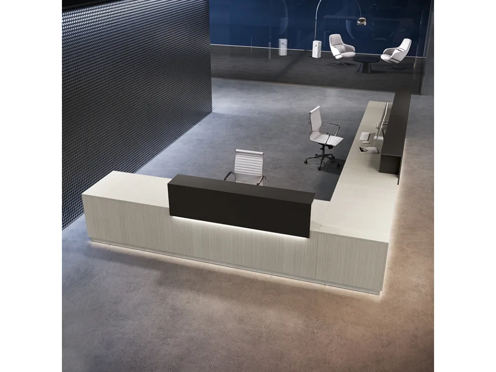 Un ricco catalogo di banconi reception in melaminico ti sta aspettando! Il modello Reception Class 05 di Colombini Office ti sta aspettando!