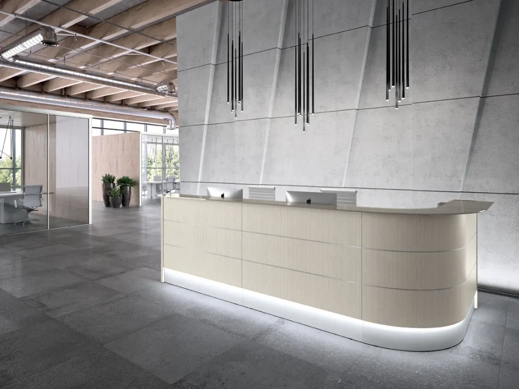 Vuoi ammobiliare uffici operativi e direzionali? Ecco qui diverse proposte di banconi reception in melaminico, come il modello Reception GET IN 05 di Colombini Office.
