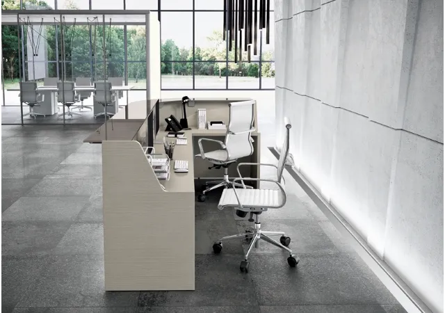 Vuoi arredare l'ambiente lavorativo? Eccoti diverse proposte di banconi reception in melaminico, come il modello Reception GET IN 06 di Colombini Office.