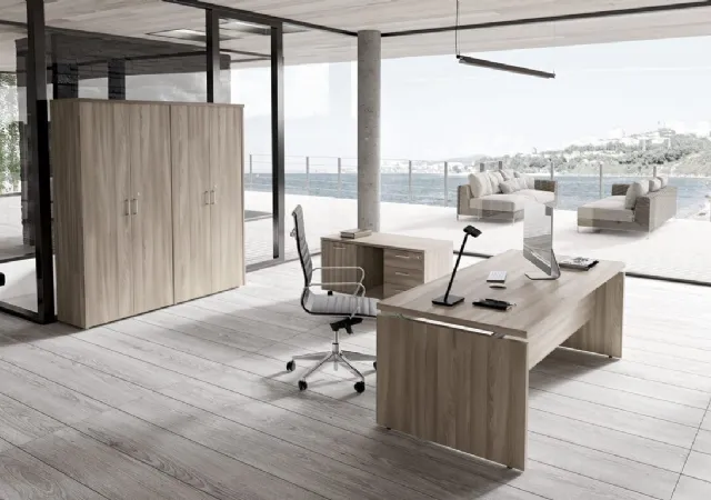 Vuoi arredare l'ambiente lavorativo? Ecco qui differenti proposte di scrivanie direzionali in melaminico, come il modello Scrivania Direzionale Cubo Olmo di Compir.